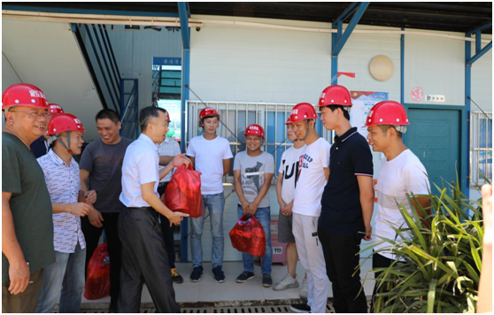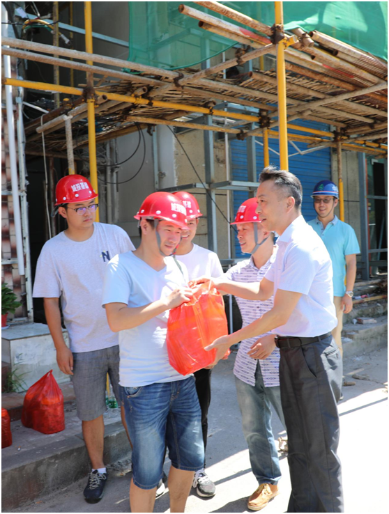 送清涼,亦送溫暖,漆書記一行代表集團工會為項目辦工作人員送去了組織的關(guān)懷。 每到一處,慰問小組都會仔細詢問工程的建設進展情況、項目的防暑降溫工作落實情況和高溫期間的工作安排。漆書記在現(xiàn)場叮囑大家要針對高溫天氣,精心組織,科學施工,合理安排,做好防暑降溫和安全生產(chǎn)工作,切實保障項目辦工作人員的安全健康。