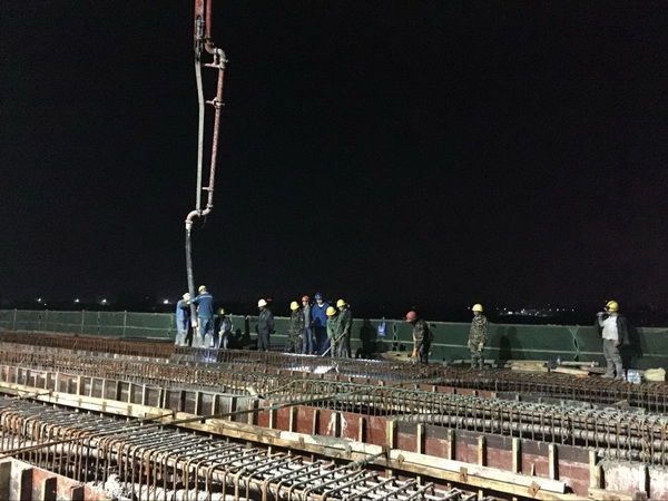 4月10日08時18分,伴隨著機械及禮炮轟鳴聲,昌東大道南延工程部雄溪河大橋連續(xù)梁首次澆筑混凝土準時開盤,本次澆筑總方量為1806方,澆筑橋梁跨度為190米,歷時29個小時,于4月11日13時08分澆筑圓滿完成!